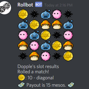 A slot machine that renders symbols as emotes. It comes in a few flavours: 3x3, 5x5, 7x7, and umm, MapleStory.